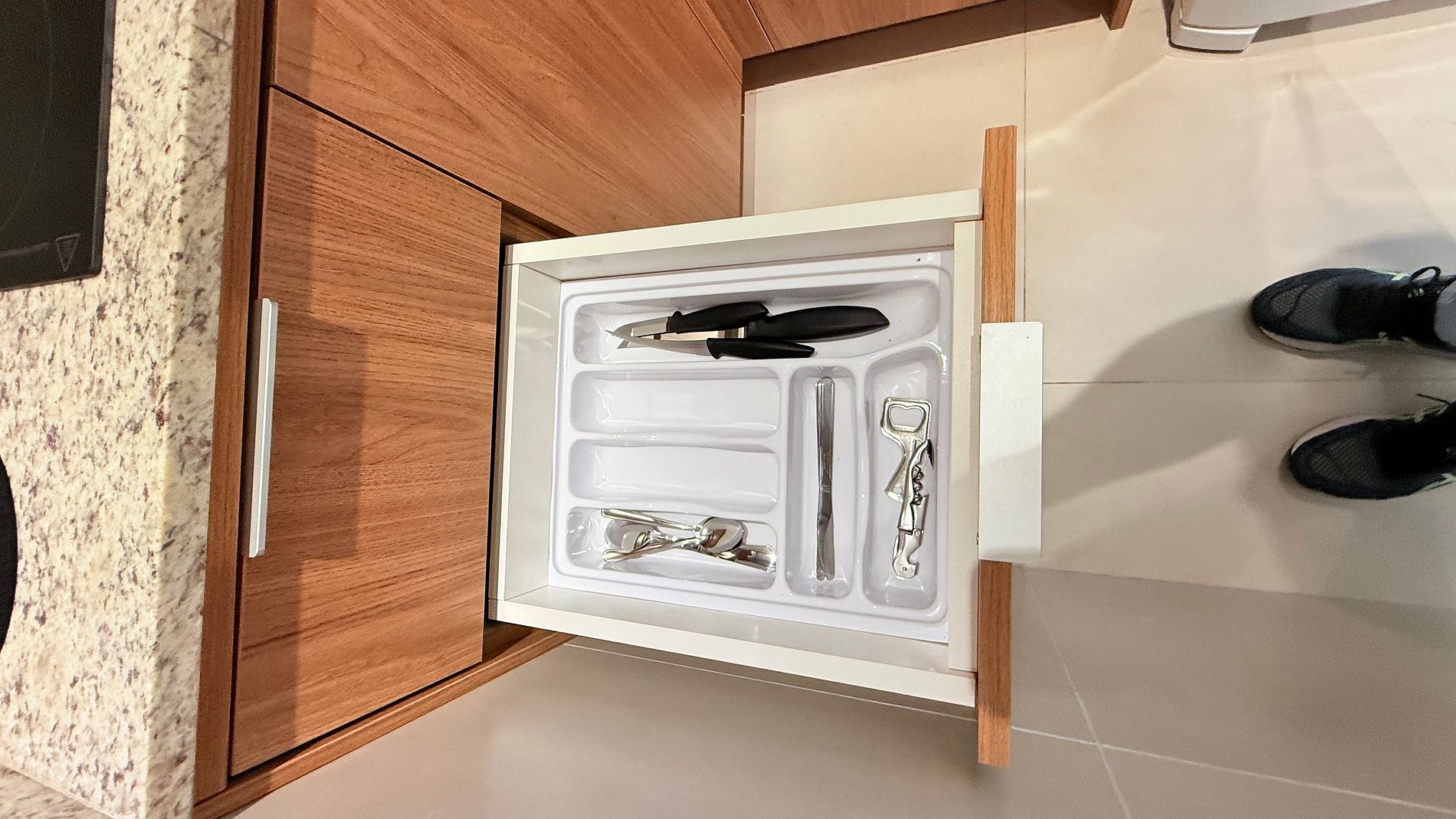 Featuring light and contemporary décor, the environment combines neutral tones, natural lighting, and coastal touches that invite relaxation. The kitchen is fully equipped with a cooktop, microwave, refrigerator, coffee maker, and all essential utensils for preparing your own meals.