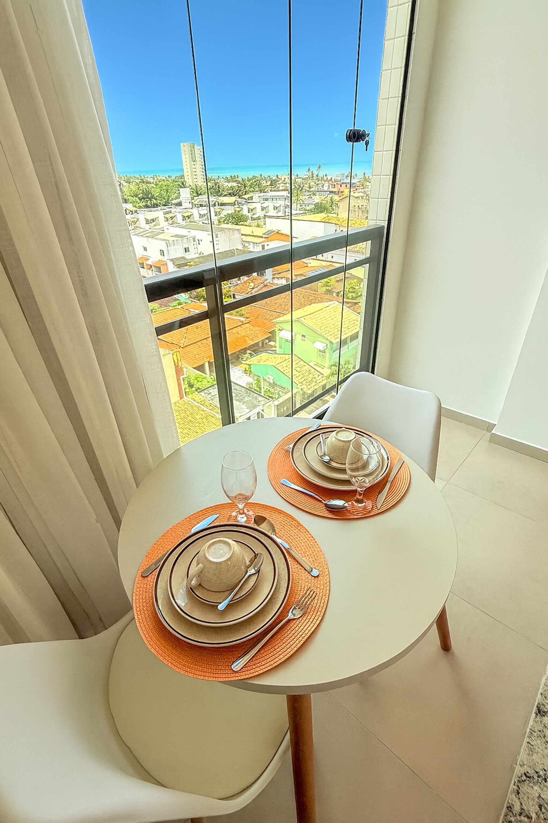 El espacio está inteligentemente integrado, uniendo sala, dormitorio y balcón con una vista encantadora de la ciudad y del mar al fondo, el escenario ideal para relajarse y recargar energías.