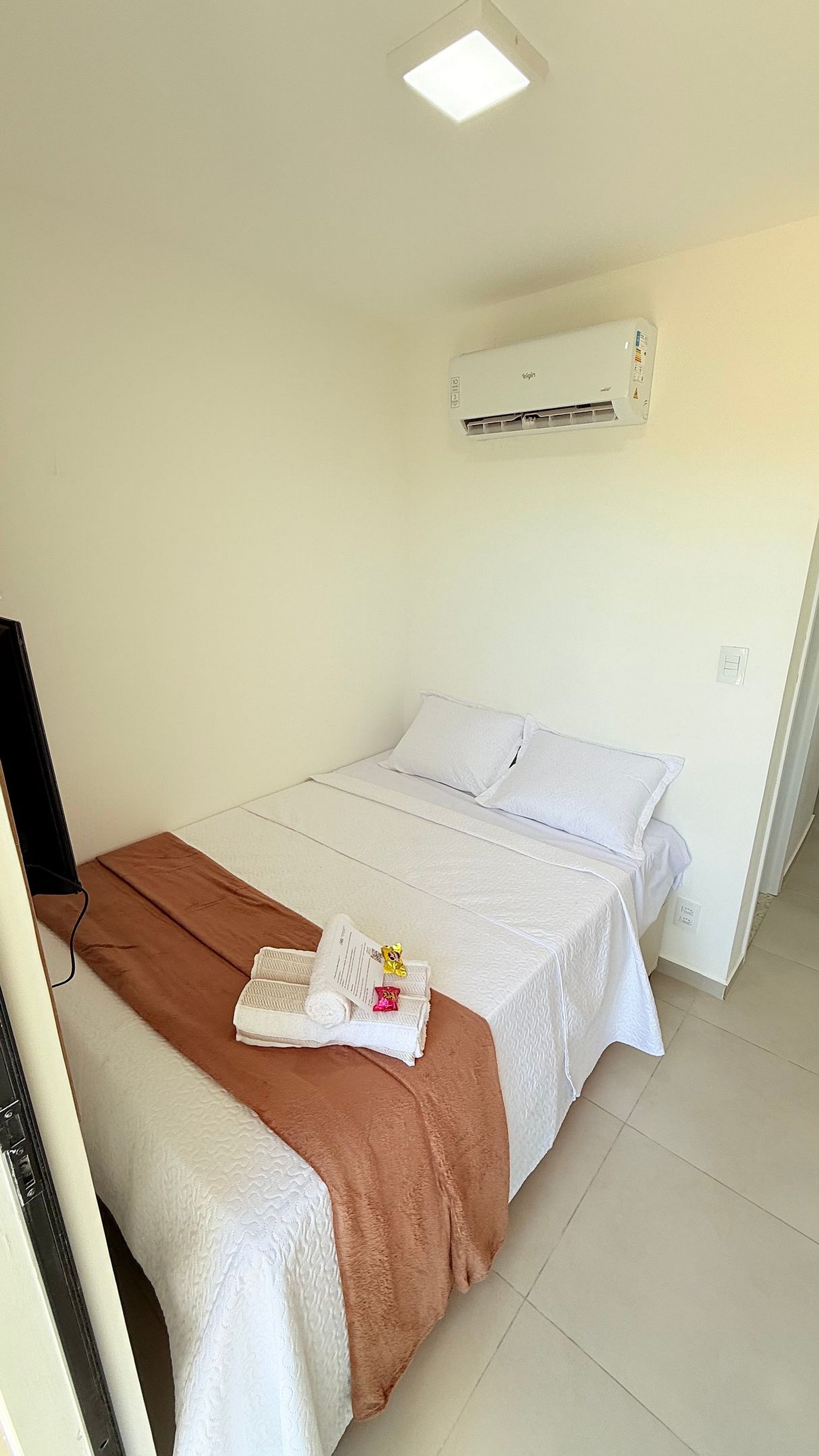 O espaço foi pensado para oferecer o máximo de conforto em um formato compacto: cama de casal aconchegante, ar-condicionado, TV e enxoval de qualidade hotel. A varanda, banhada por luz natural, é um convite para relaxar, ler um livro ou simplesmente apreciar o clima agradável de Stella Maris / Salvador.